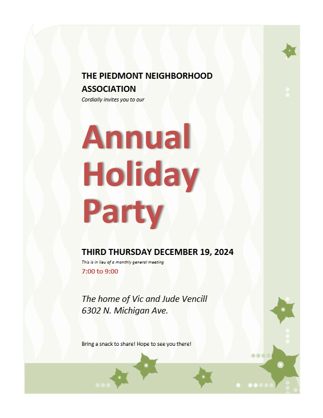 Seasons Greetings from your Piedmont Neighborhood Association!